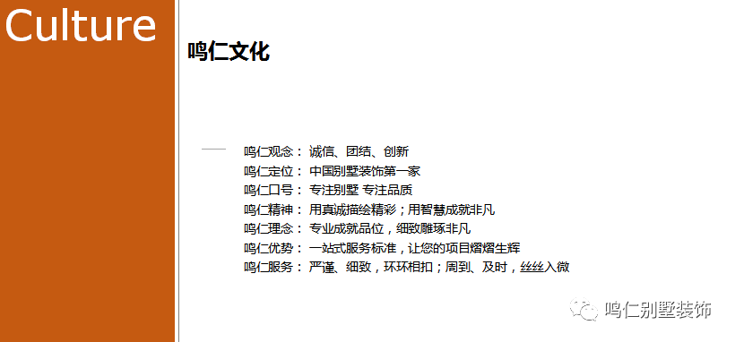 公司团队秉承“诚信、团结、创新”的企业核心价值观,树立装饰行业的健康新形象;爱人、爱己、爱社会、爱自然、爱艺术,把每一件作品做到尽善尽美。